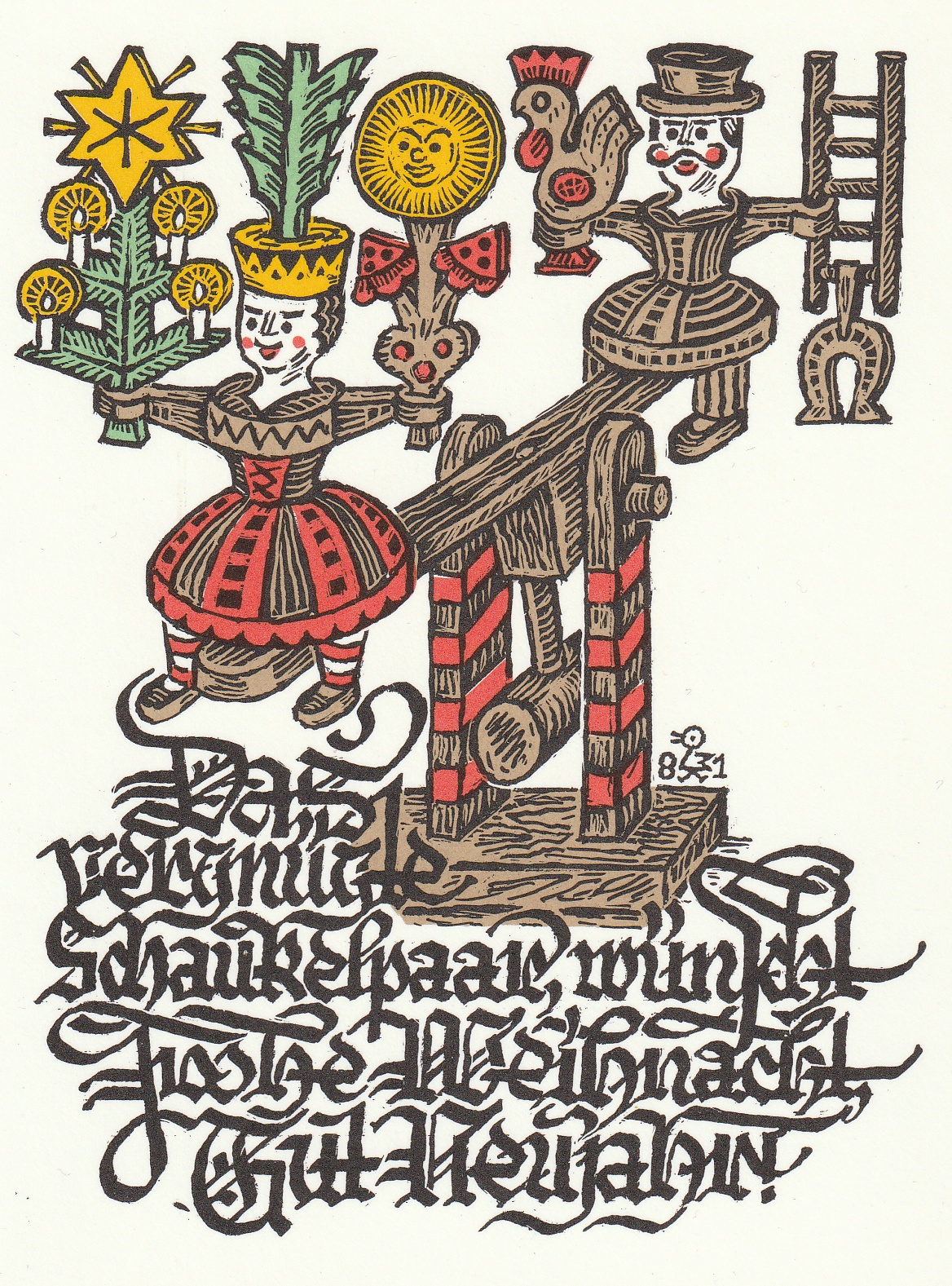 barevný dřevoryt, rozměr tiskové plochy 125:95 mm, autorská značka v desce, 1981
