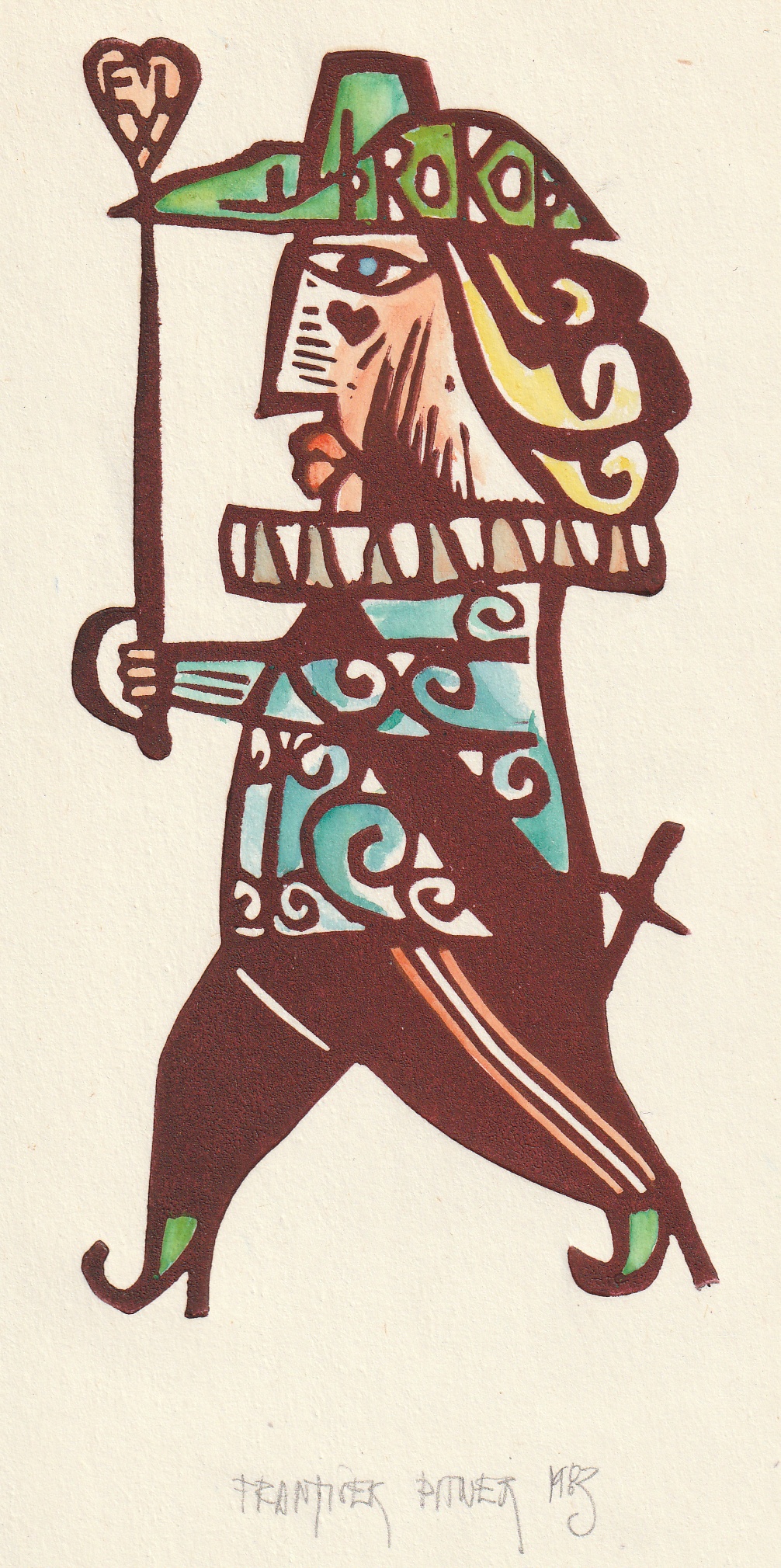 kolorovaný linoryt, rozměr tiskové plochy 140:70 mm, signováno, 1983