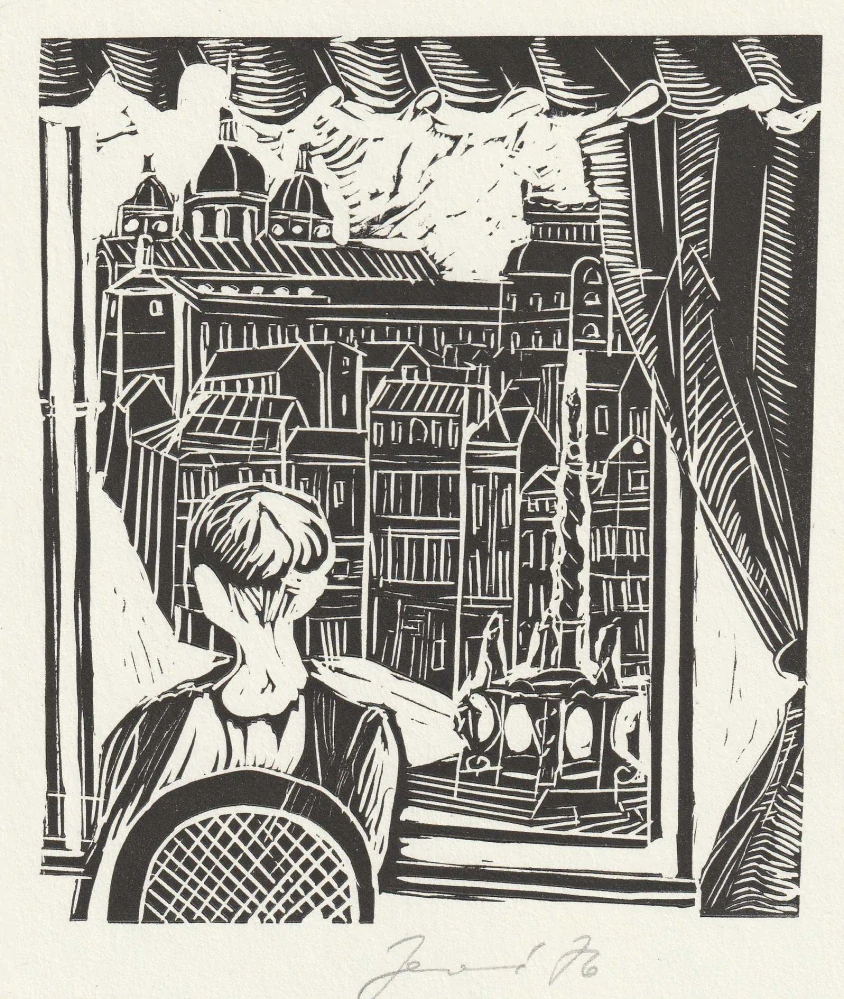 dřevoryt, rozměr tiskové plochy 142:122 mm, signováno, 1976