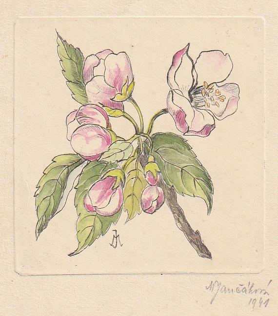 kolorovaná suchá jehla, rozměr tiskové plochy 90:87 mm, signováno, 1941